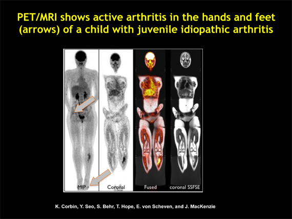 It is my hope that in the future there will be tools to help patients even more effectively than we can today. We are studying the next advances in arthritis diagnosis and treatment monitoring through our research. The PET/MRI research is one area of intense focus where we hope to help children with JIA and adults with rheumatoid arthritis. This represents the next generation of imaging and helps us to understand the function of the disease and to precisely identify the activity of a child's immune system. This new imaging modality will positively impact the quality of treatments going forward.